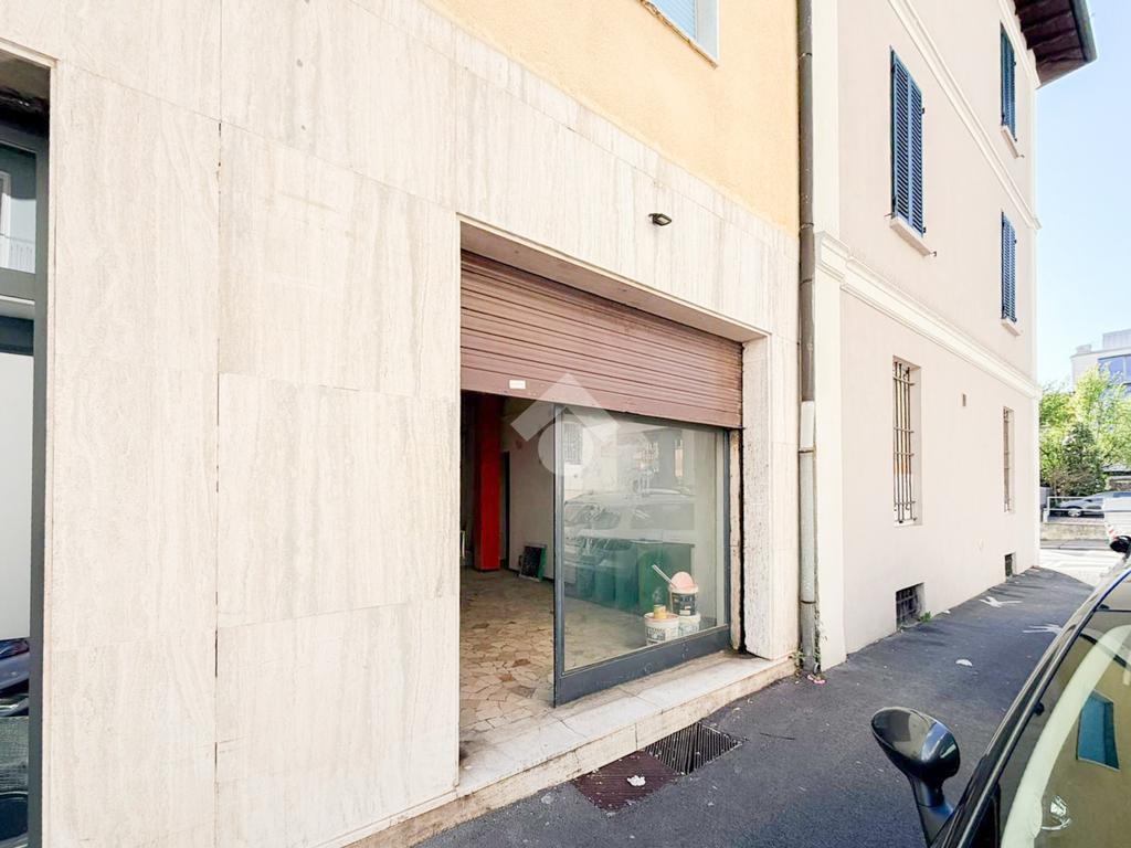 Negozio di 45 mq a piano terra di una palazzina residenziale in Via Giovanni Bruni, situato in una zona di forte passaggio pedonale e veicolare tra Via Diaz e Via XXV Aprile, nel cuore di Brescia.